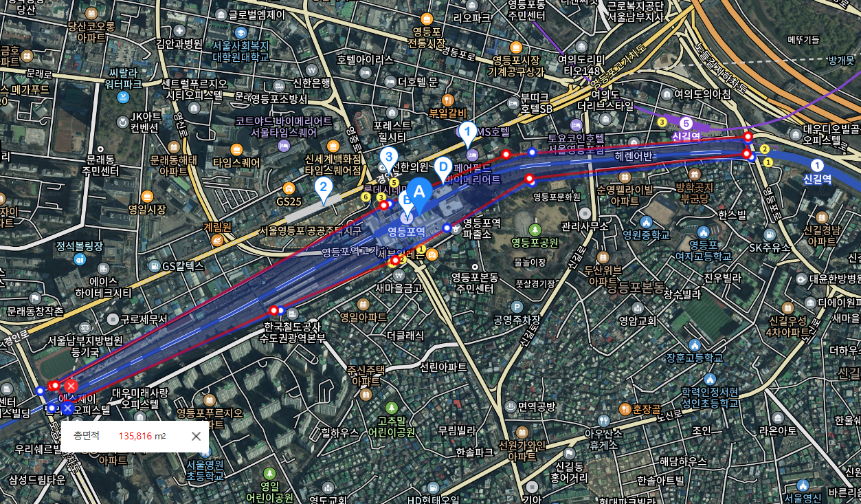 이르 예로한 영등포 역사 주변의 범위 예상도
