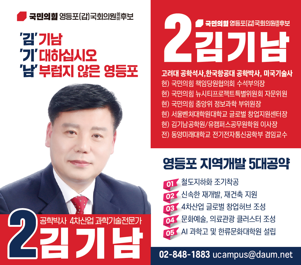 김기남 정보통신학원 김기남 원장님이 국민이 힘 영등포 "갑" 지구당 22대 국회의원 후보로 등록하셔서