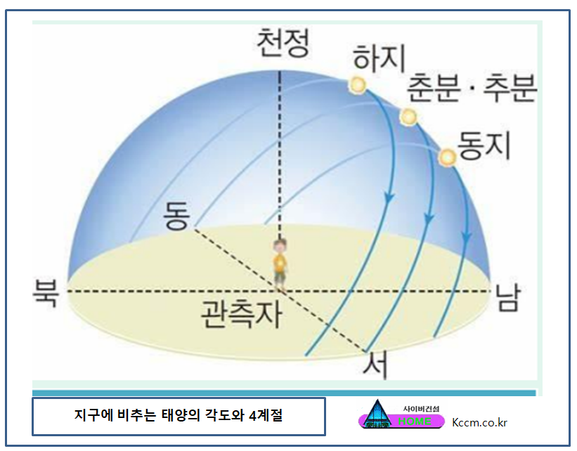 지구에 비추는 태양의 각도 4계절의 태양.