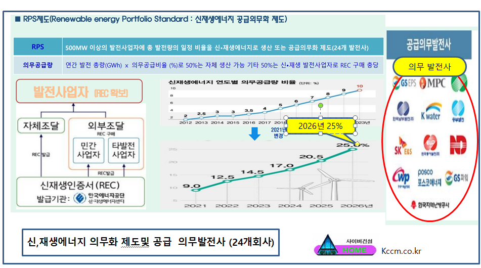 이러한 사실을 실천하기 위해 우리나라는 신재생 에너지 의무화 제도라는 것이 있는데