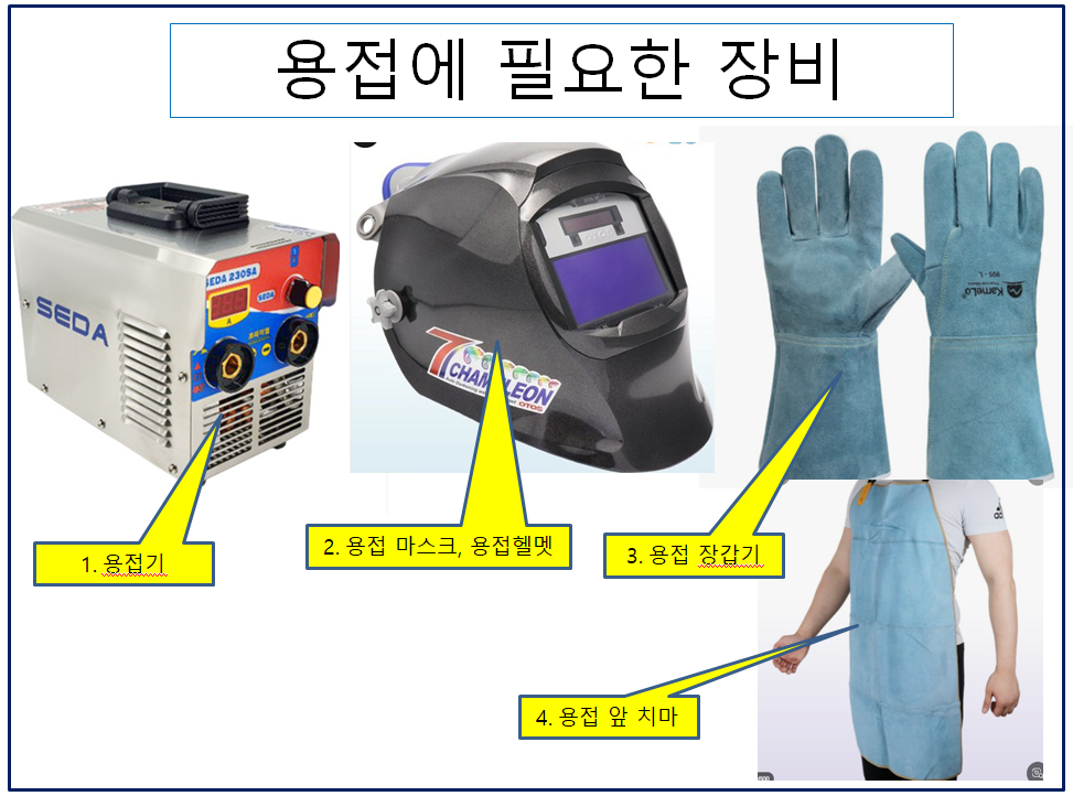 용접의 하기 위하여는 용접에 필요한 공기구와 안전 용품이 있어야 한다