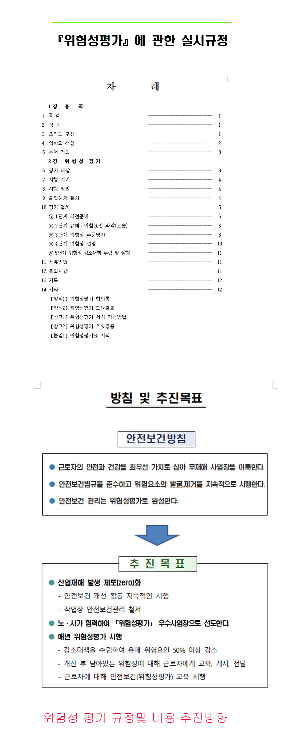 1. 위험성 평가에 대한 실시 규정및 목차.
