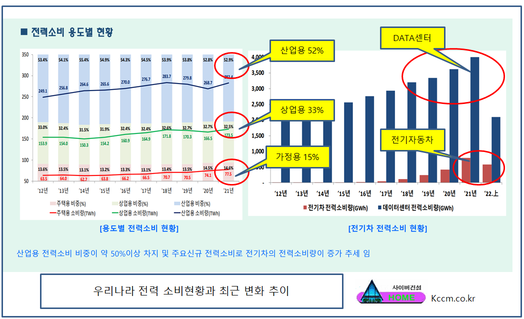 등장했으며 전기 자동차 역시 최근 몇 년 사이 급속히 증가해 전기 소비자로서의 등장에 위 우측표에 나타나 있다.
