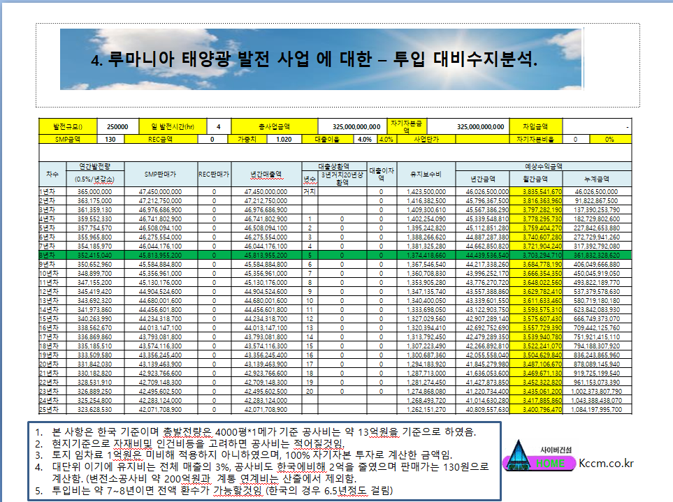 경영하고 있는 00님의 부탁으로 해외 태양광 프로젝트에 대한 내용을 검토하게 되었는데