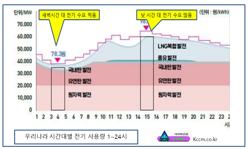 공급되는 전기는 사용하지 아니하면 없어지는 것이다. 해서 전기의 사용이 적은 새벽시간대